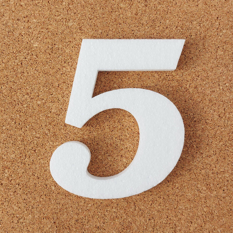 2 cm-es vastagságú polisztirolból készült ötös számjegy ablakdekorációnak, többféle válaszható magassági méretben!