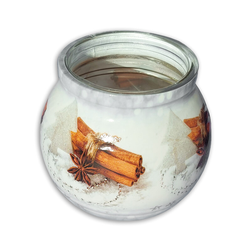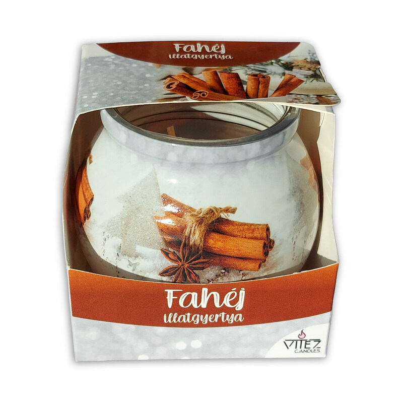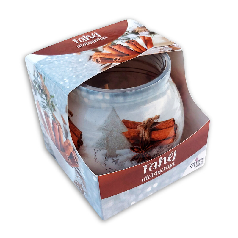 A dekoratív és változatos mintájú, fóliázott üvegben az aromás, fahéj illatú viaszgyertya körülbelül 16 óráig ég. Ünnepi dekorációnak, díszgyertyának, ajándéknak is tökéletesen megfelelő!