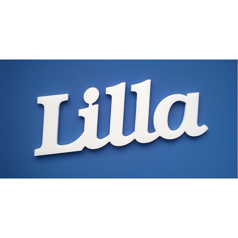 Ajtóra vagy gyerekszoba falára felragasztható, dekorációs célra készült Lilla név felirat, három féle választható magassággal, 0.9 cm vastagságú fehér színű Depron keményhab alapanyagból!