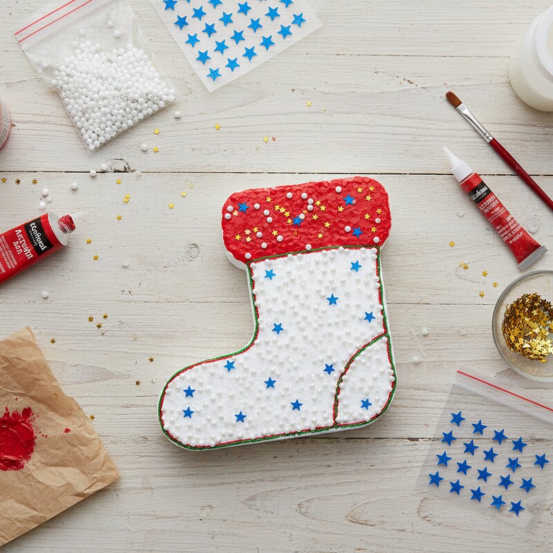 Mikulás csizma alakú hungarocell karácsonyi dekoráció.