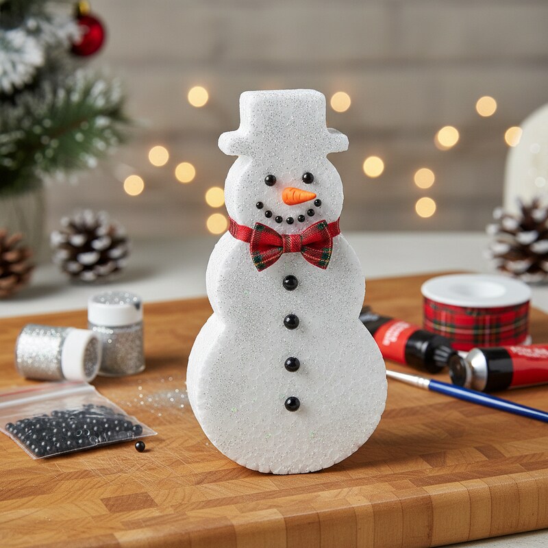 Hóember alakú hungarocell karácsonyi dekoráció.