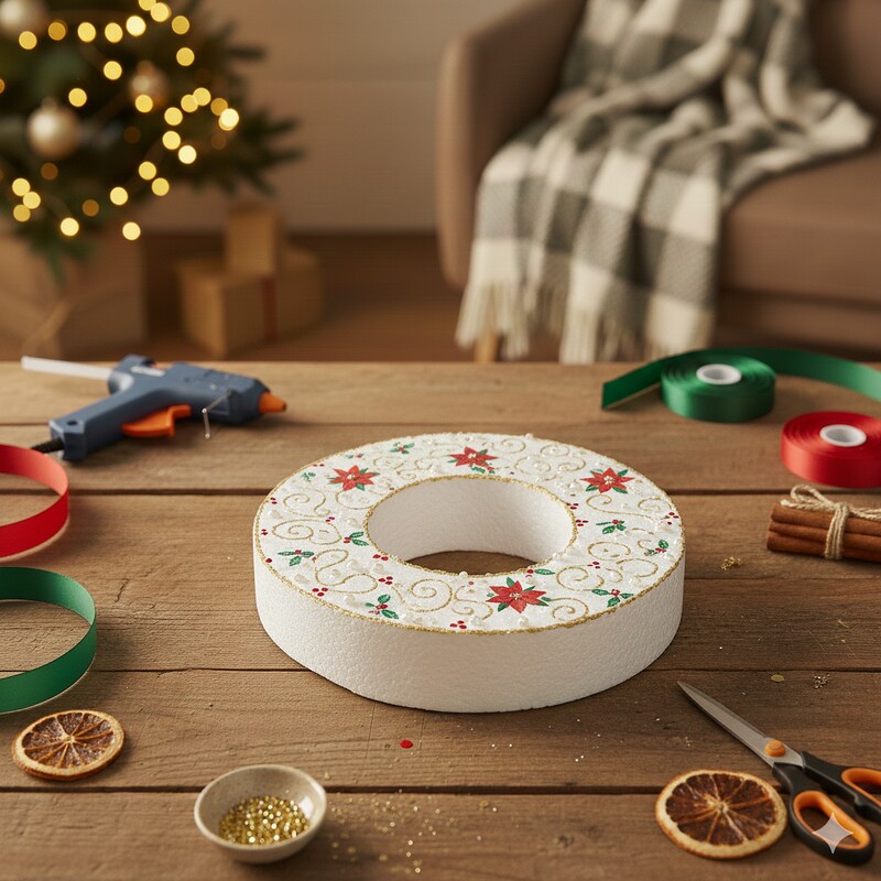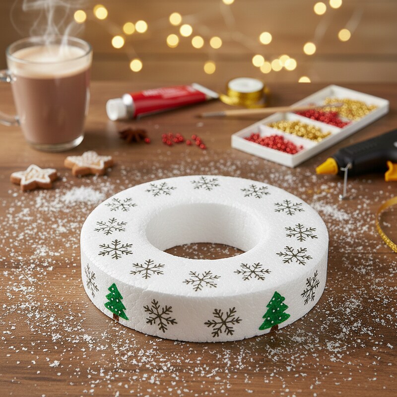 Gyűrű alakú hungarocell karácsonyi dekoráció.